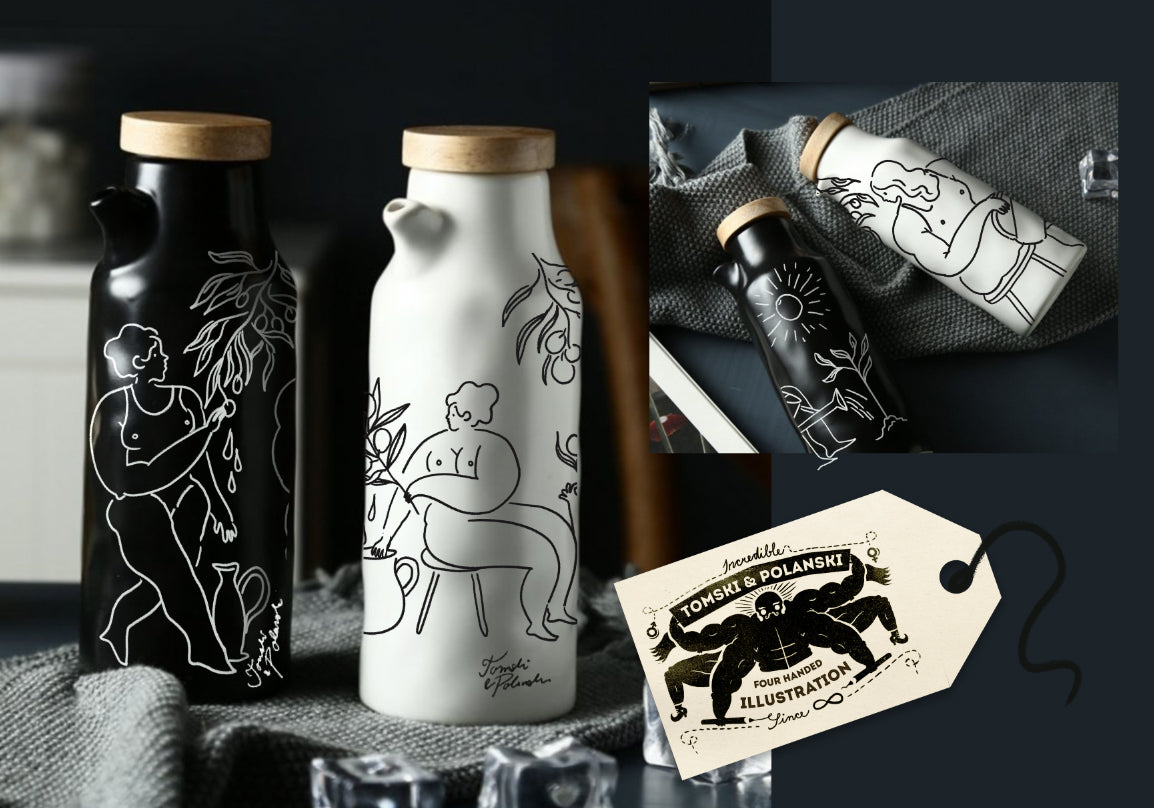 Autorka naší první ArtDesign kolekce dárkových originálních lahví na olivový olej je polovinou populárního dua ilustrátorů Tomski&Polanski , které můžete znát z novin, časopisů, knih či filmových plakátů.